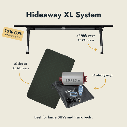 Say goodbye to tent poles and zippers—with the Hideaway Sleeping Platform you get a level, elevated surface with plenty of space for your gear underneath. Sleeping in your vehicle has never been easier.