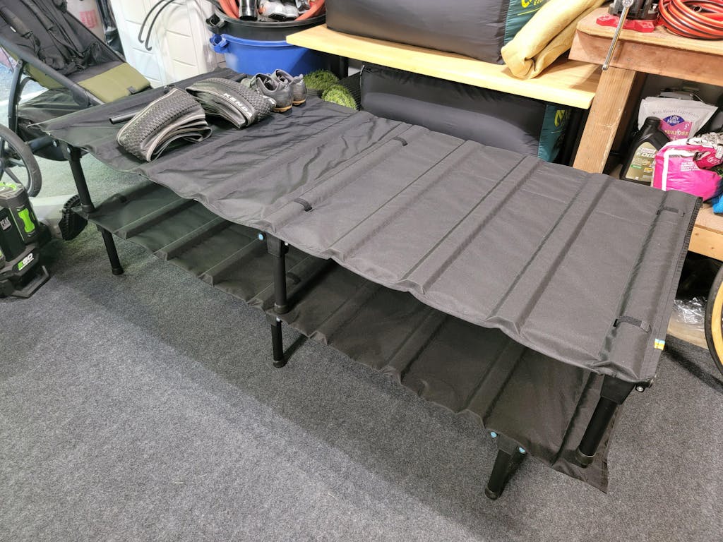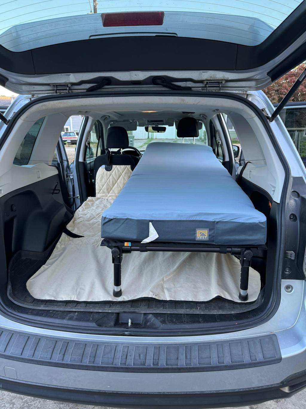 With the Exped mattress, the Hideaway was an excellent sleeping solution, and a seat for other camping needs. It was all set up in the car, but revising the level was simple.
