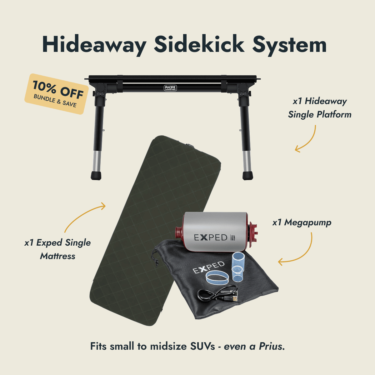 For solo adventurers with small to mid-size SUVs (this one even fits a Prius!)